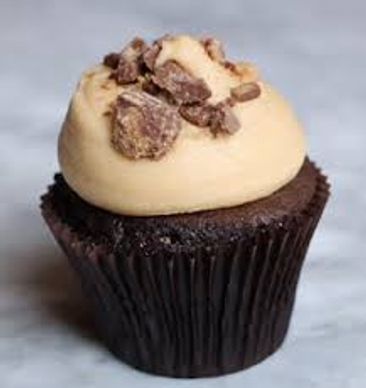 a chocolate cupcake topped with a peanut butter cream cheese icing